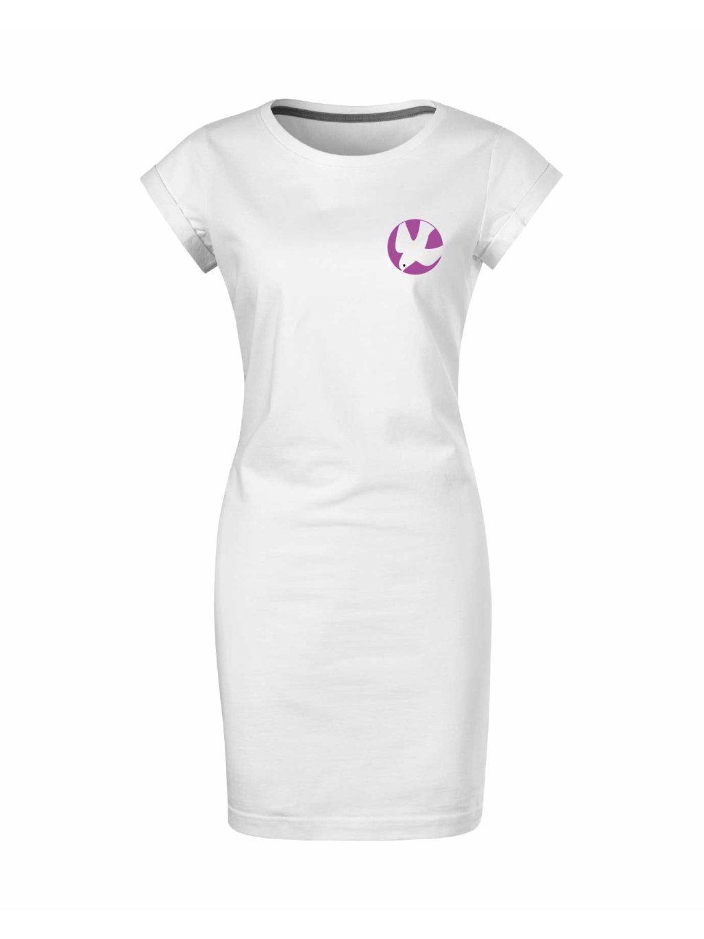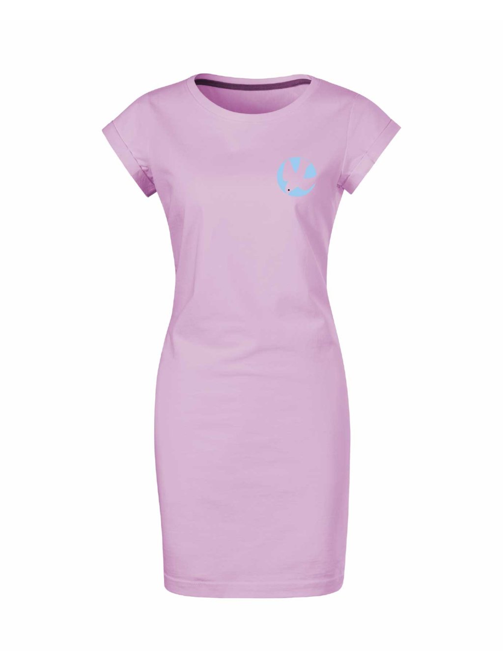 - hlubší kulatý výstřih, délka šatů nad kolena