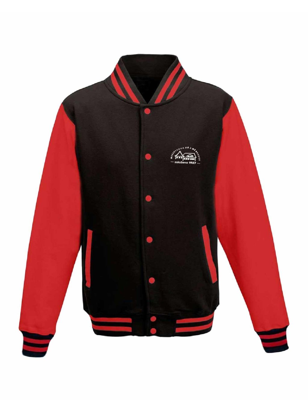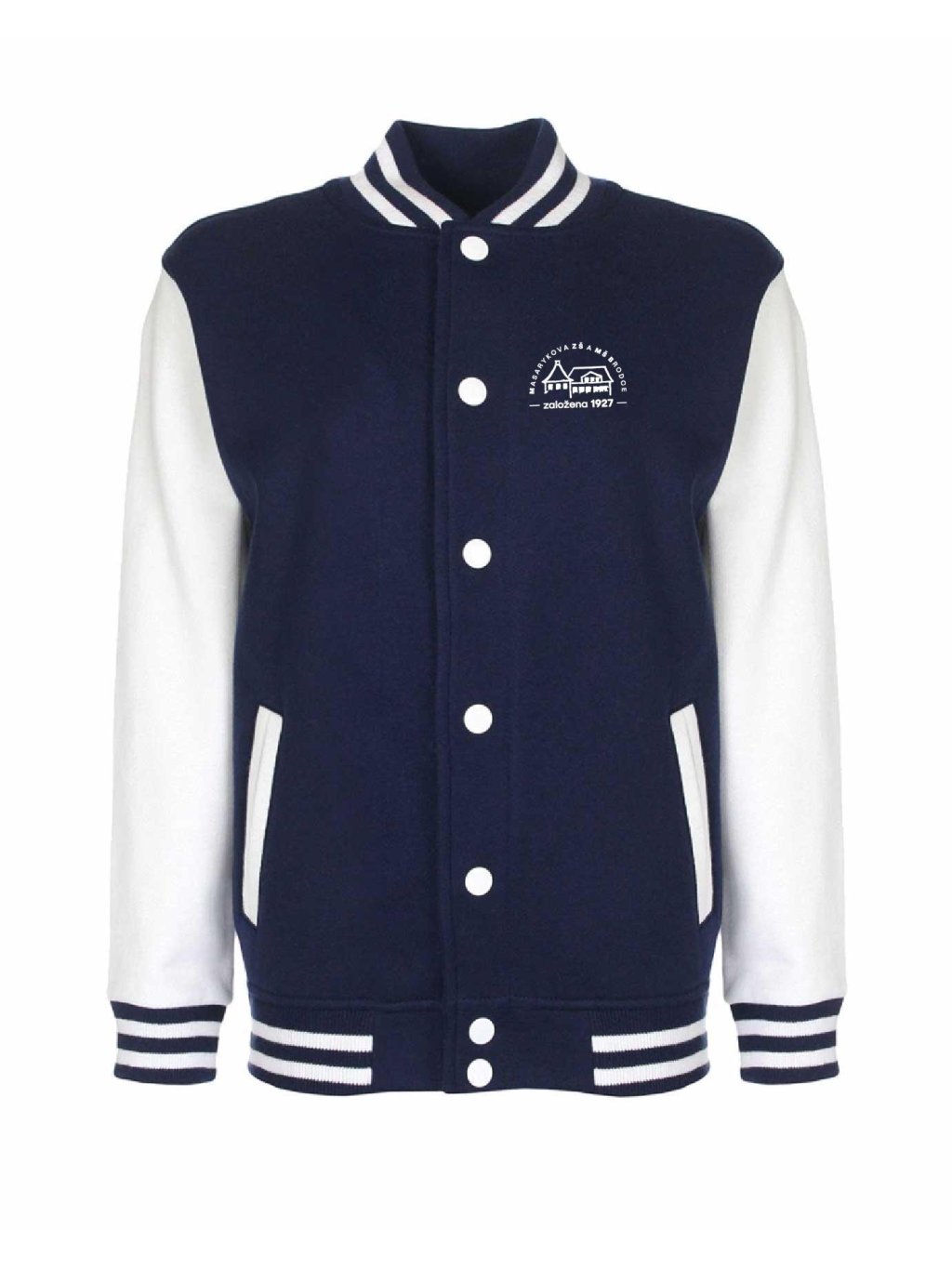 Luxusní kousek jak z amerických filmů je College mikina od Schools United se zapínáním na kovové cvočky. Díky super střihu sedne jak klukům tak holkám. College mikina má malý potisk na prsou.