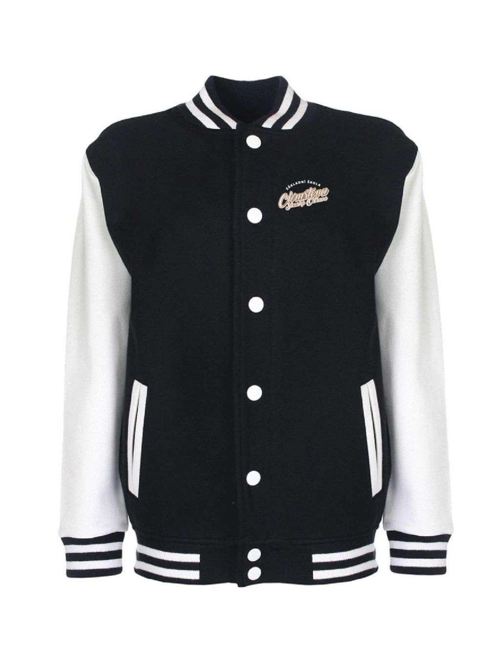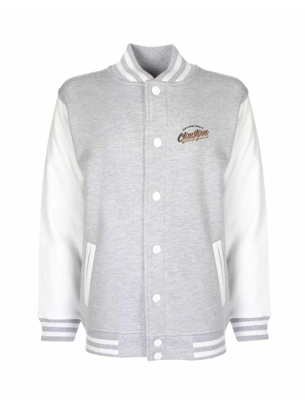 Luxusní kousek jak z amerických filmů je College mikina od Schools United se zapínáním na kovové cvočky. Díky super střihu sedne jak klukům tak holkám. College mikina má malý potisk na prsou.