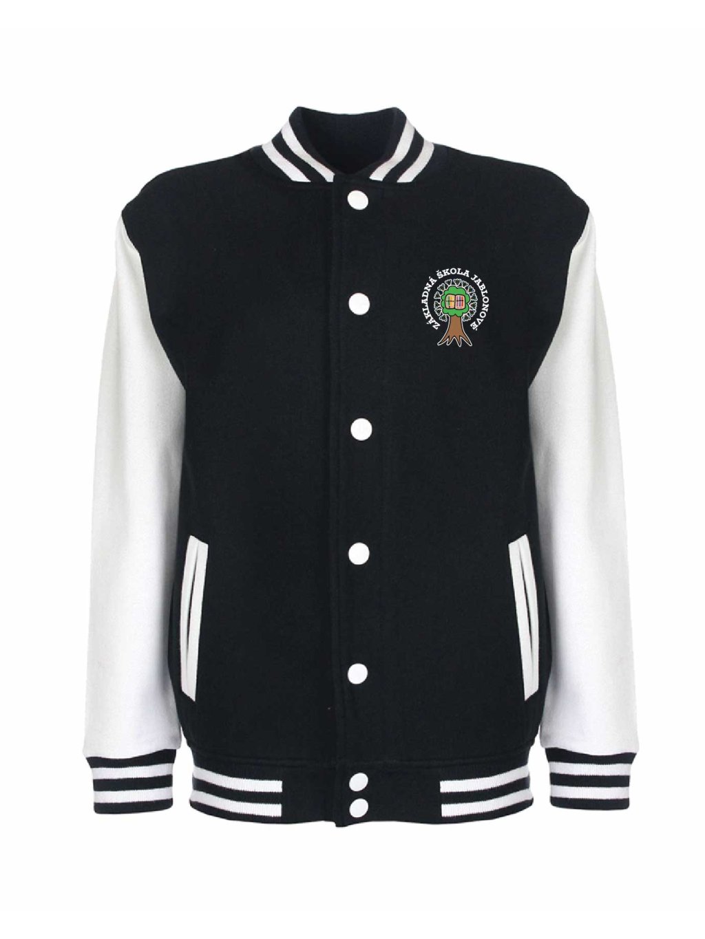 Luxusní kousek jak z amerických filmů je College mikina od Schools United se zapínáním na kovové cvočky. Díky super střihu sedne jak klukům tak holkám. College mikina má malý potisk na prsou.