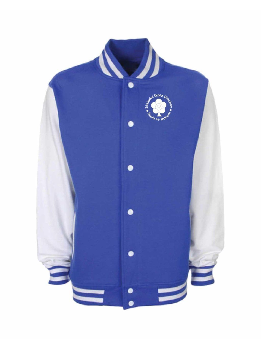 Luxusní kousek jak z amerických filmů je College mikina od Schools United se zapínáním na kovové cvočky. Díky super střihu sedne jak klukům tak holkám. College mikina má malý potisk na prsou.