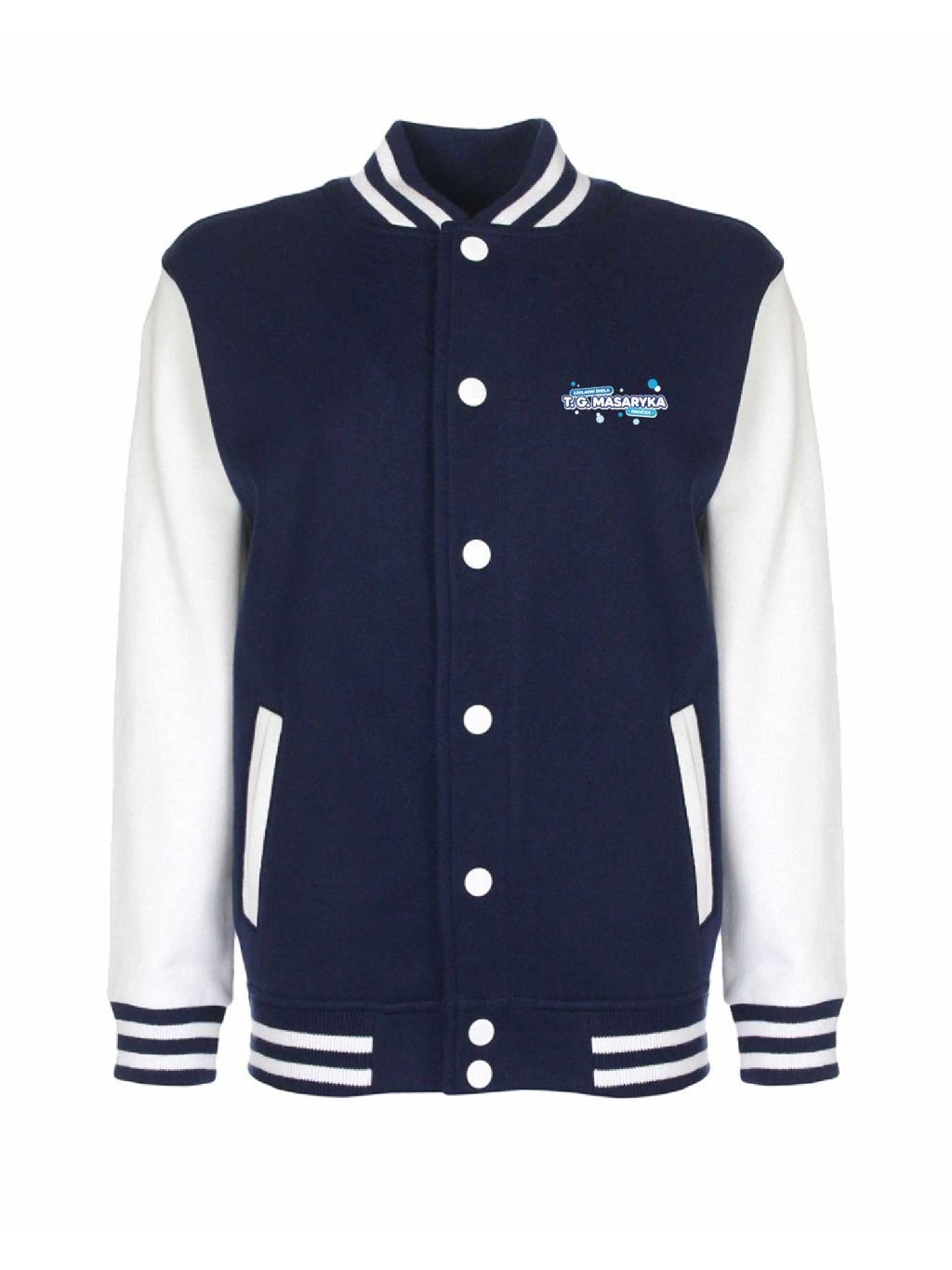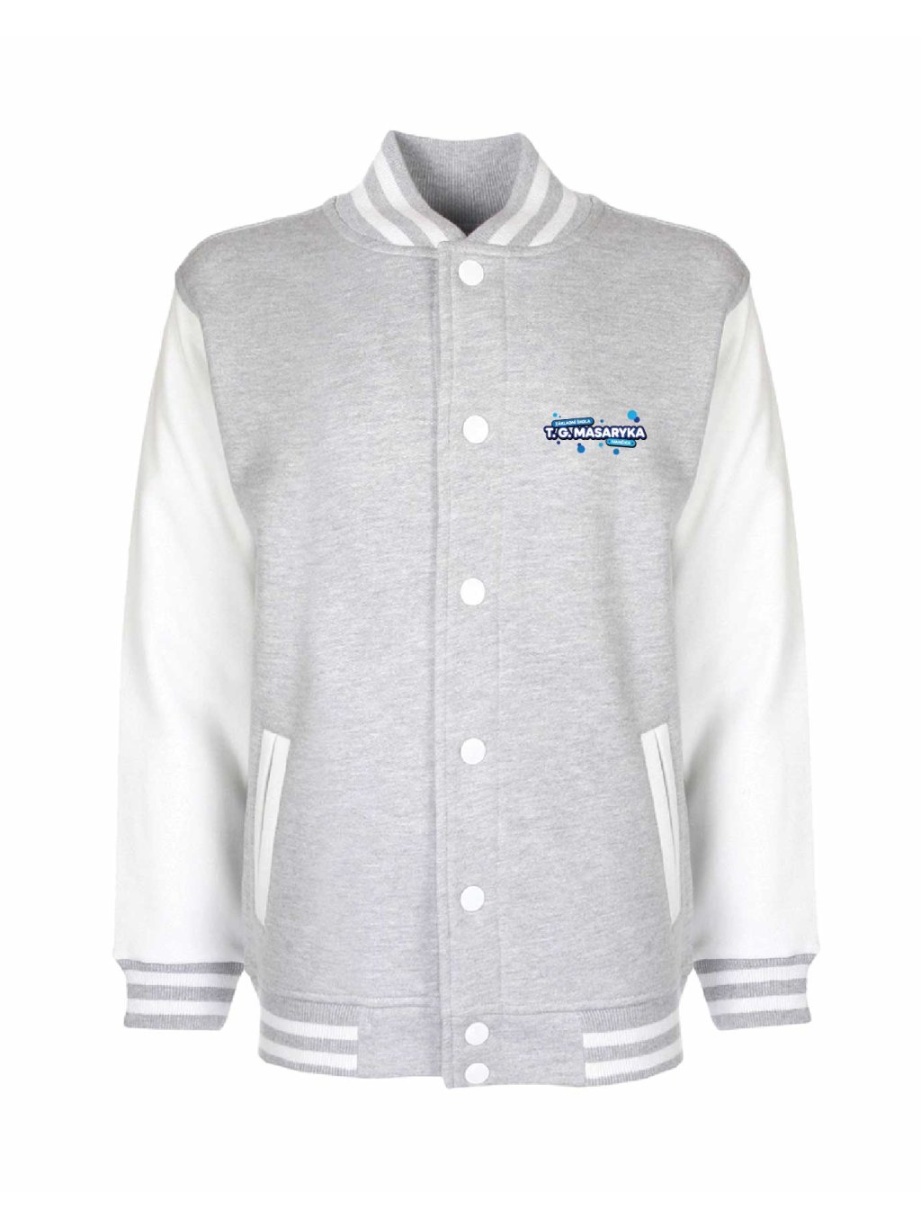 Luxusní kousek jak z amerických filmů je College mikina od Schools United se zapínáním na kovové cvočky. Díky super střihu sedne jak klukům tak holkám. College mikina má malý potisk na prsou.
