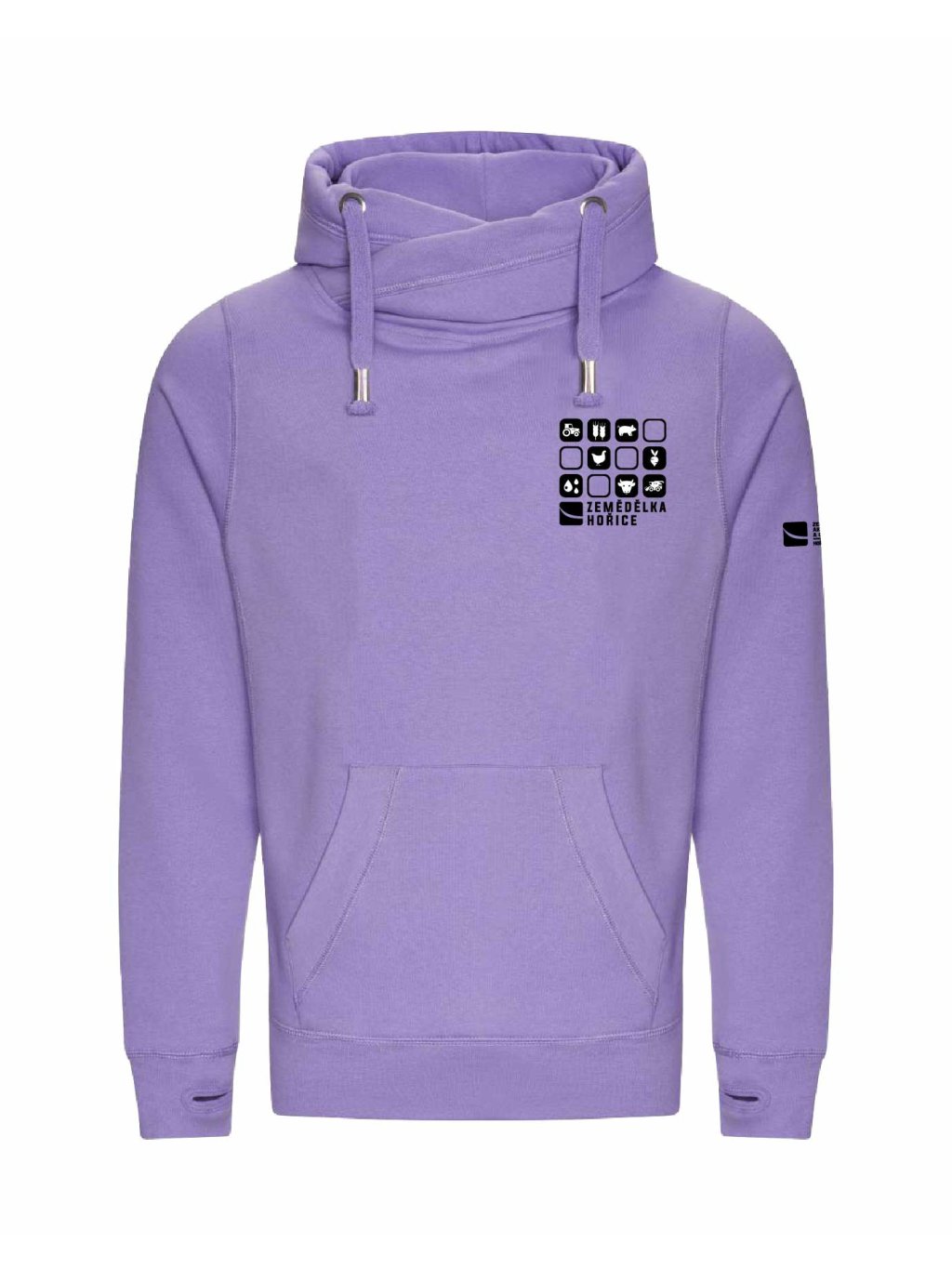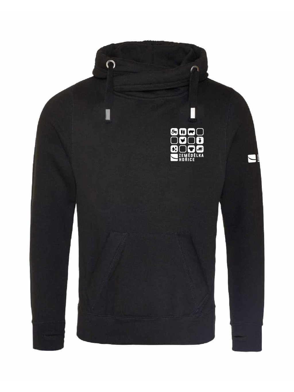 - pohodlný střih s vyšším límcem a kapucou