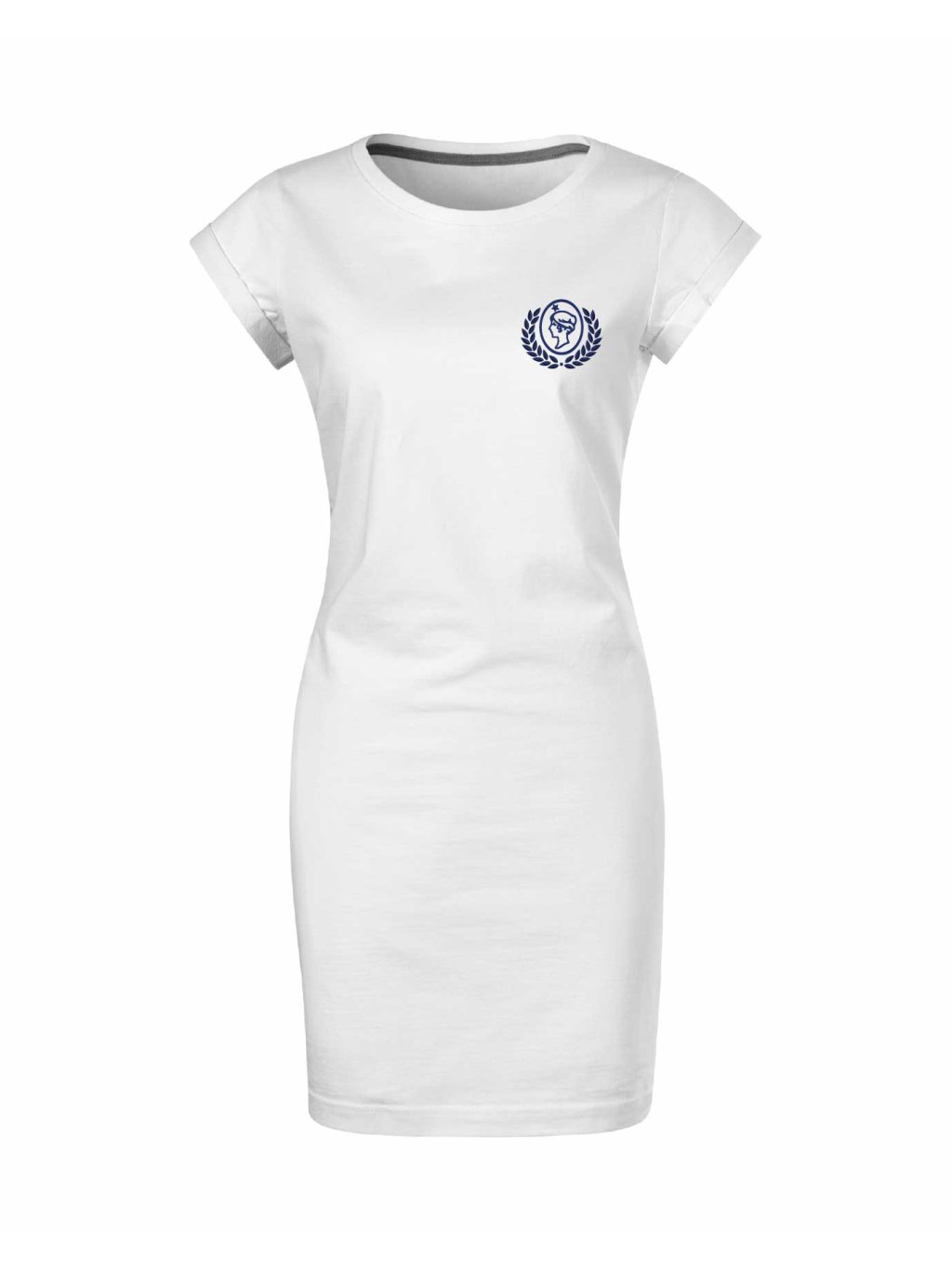 - hlubší kulatý výstřih, délka šatů nad kolena
