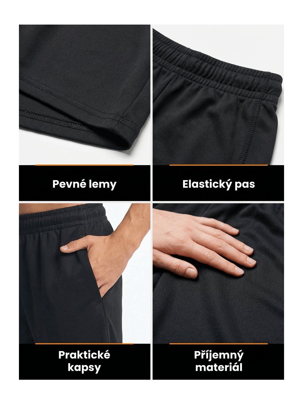 Tyto pohodlné sportovní kraťasy dopřejí dítěti volnost pohybu při tělocviku a zároveň mu pomohou cítit se jako součást třídního kolektivu. Jsou ušité z lehkého polyesteru, takže na sobě děti skoro nic necítí a mohou se naplno věnovat sportovním aktivitám. Univerzální černá barva se snadno kombinuje. Jako rodič určitě oceníte praktický pružný pas se stahovací šňůrkou, díky kterému děti kraťasy snadno obléknou a krásně jim padnou. Aby vydržely i to největší řádění, mají zpevněné dvojité prošití na spodním lemu nohavic a poctivé prošívání na bocích.