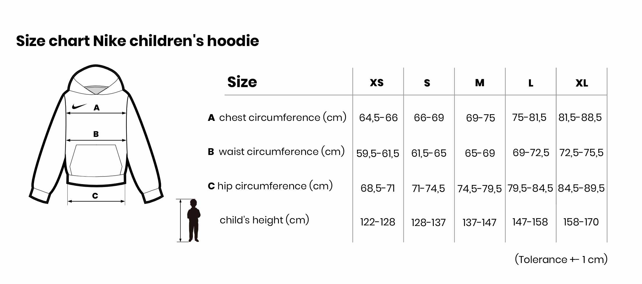 Velikostní tabulka Dětská mikina Nike