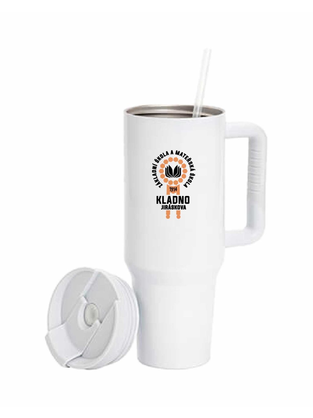 Velký termohrnek s brčkem 1200 ml ZŠ a MŠ Jiráskova - Kladno