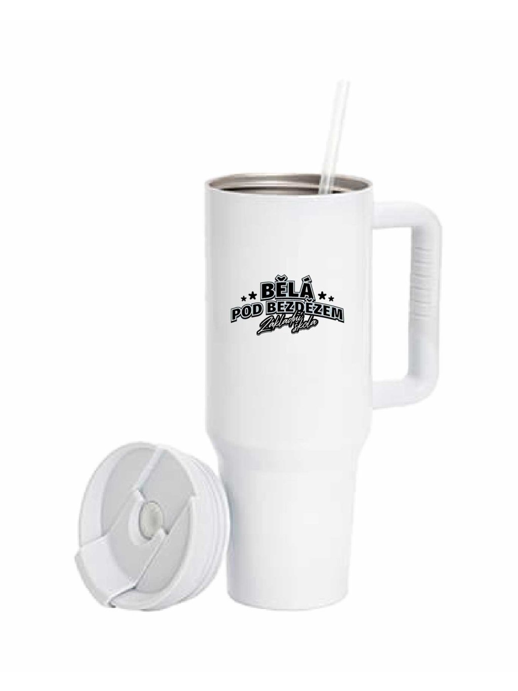 Velký termohrnek s brčkem 1200 ml ZŠ Bělá pod Bezdězem M1