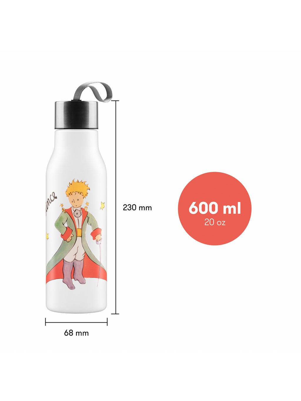 • Praktická plastová láhevs oblíbeným motivem Malého prince.• Objem láhve je 600 ml.