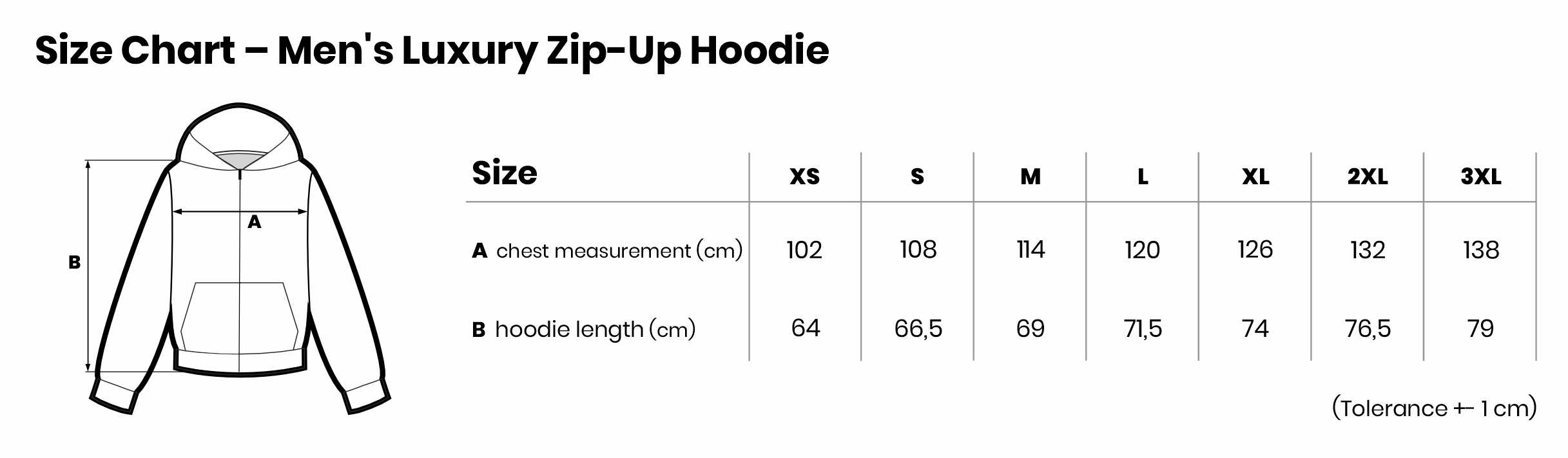 Size Chart Men's Luxury Zip-Up Hoodie