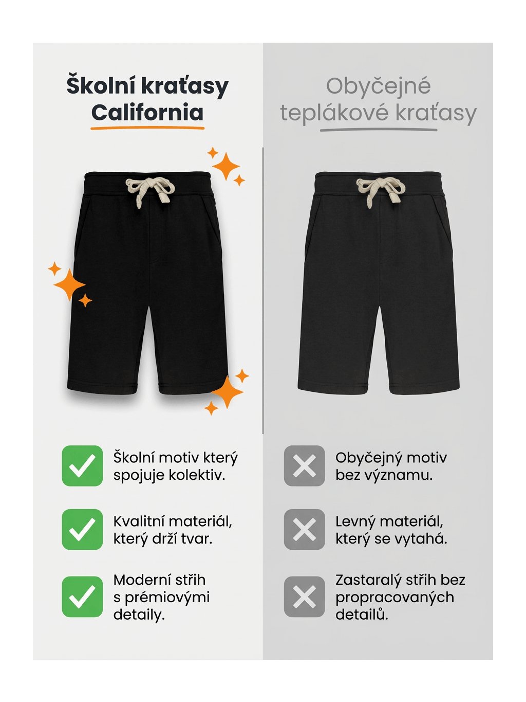 Teplákové kraťasy California ZŠ a MŠ Ptení