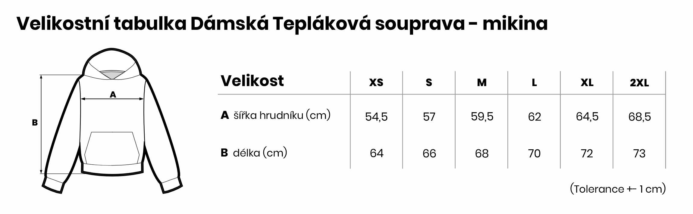 Velikostní tabulka Dámská Tepláková souprava - mikina