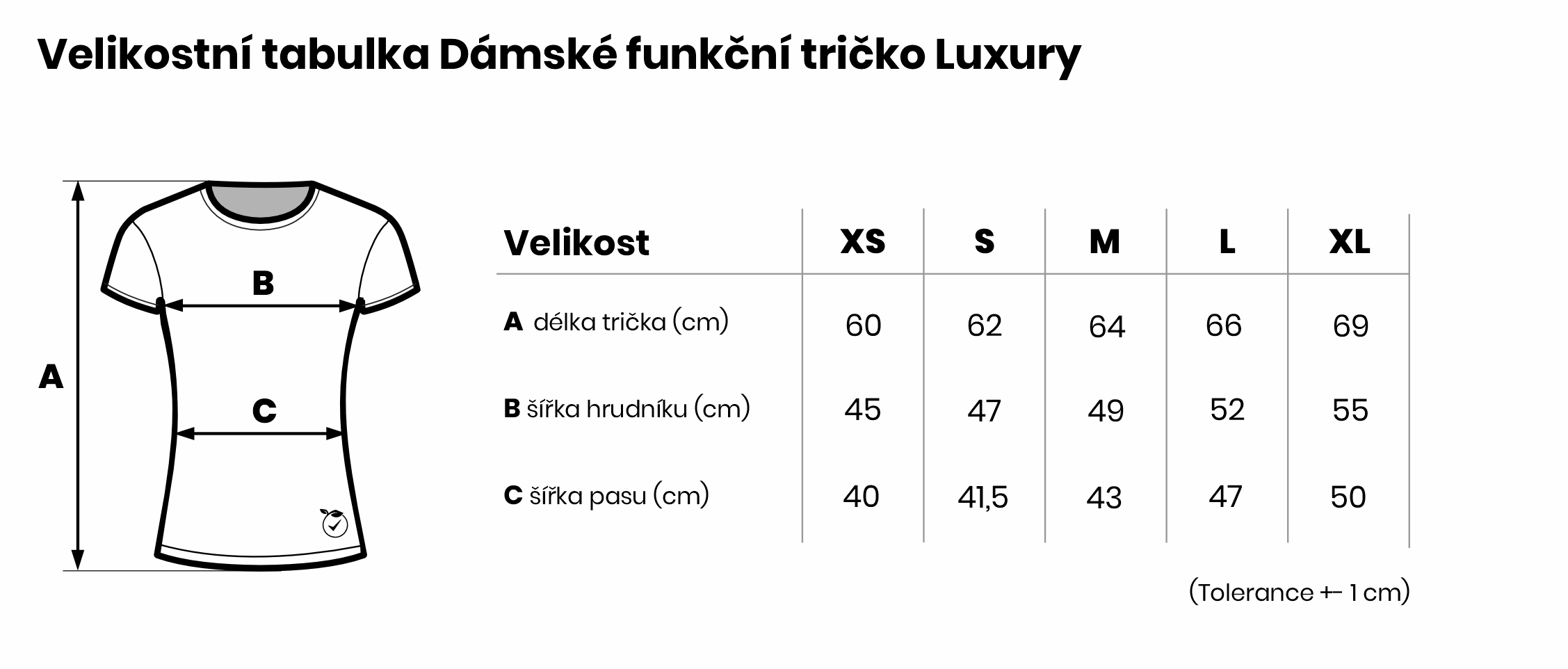 Velikostní tabulka Dámské funkční tričko Luxury