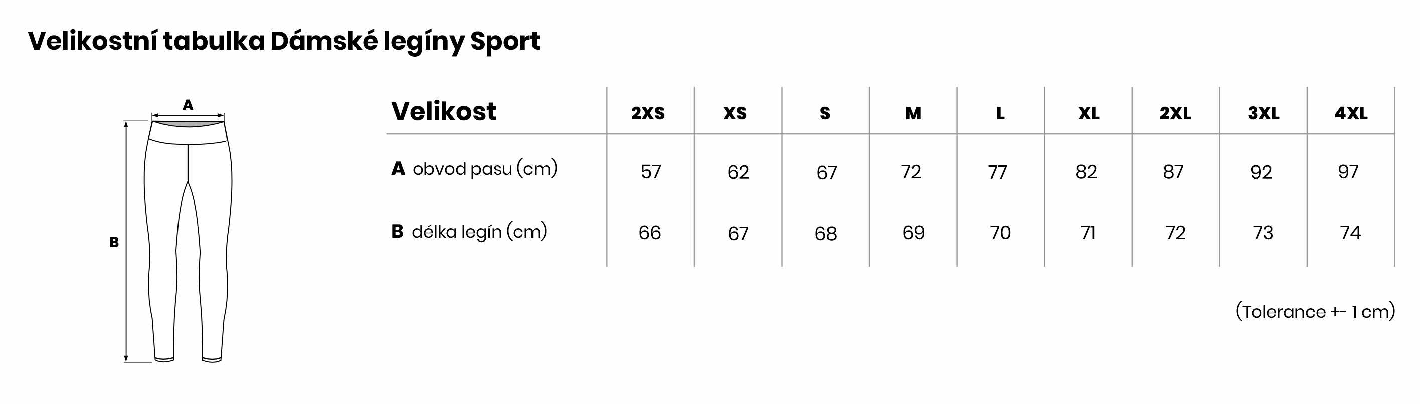 Velikostní tabulka Dámské legíny Sport