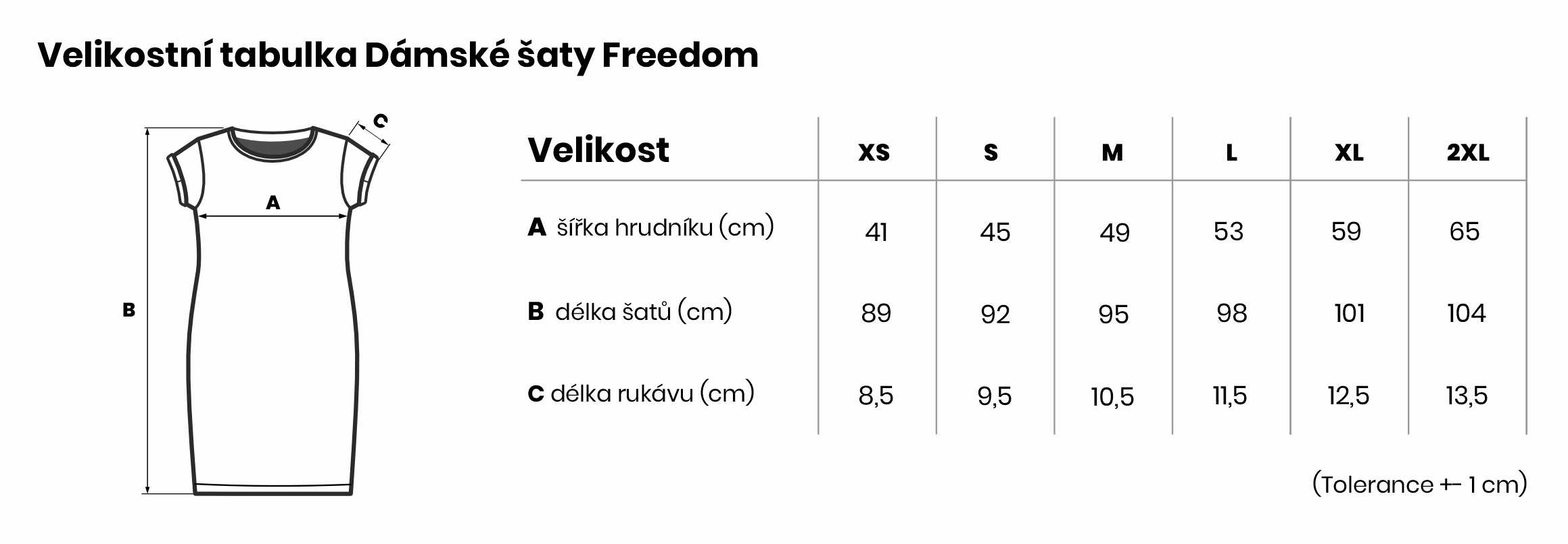 Velikostní tabulka Dámské šaty Freedom