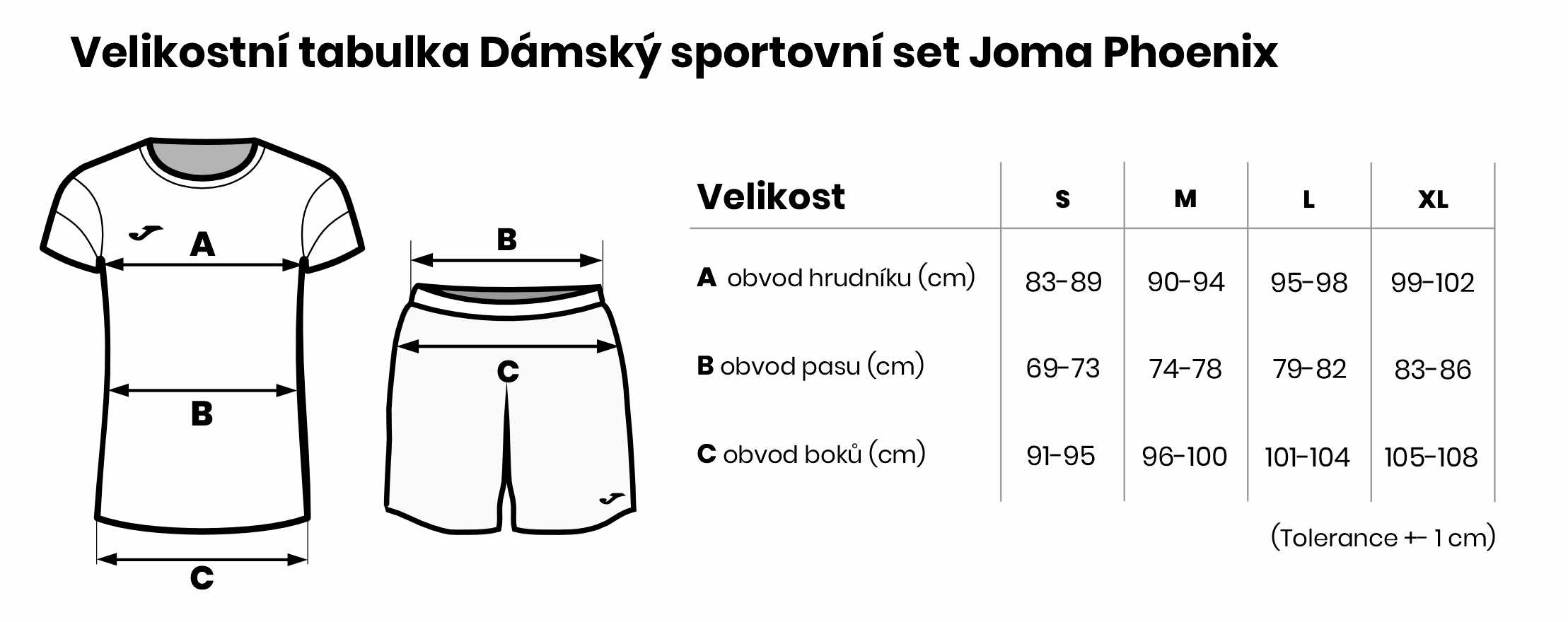 Velikostní tabulka Dámský sportovní set Joma Phoenix