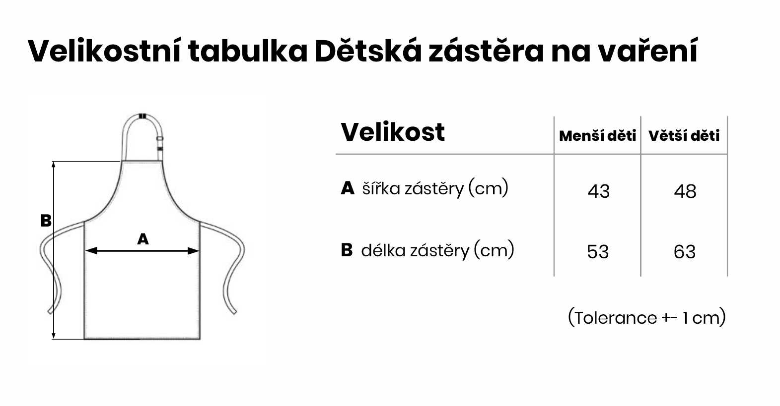 Velikostní tabulka Dětská zástěra na vaření