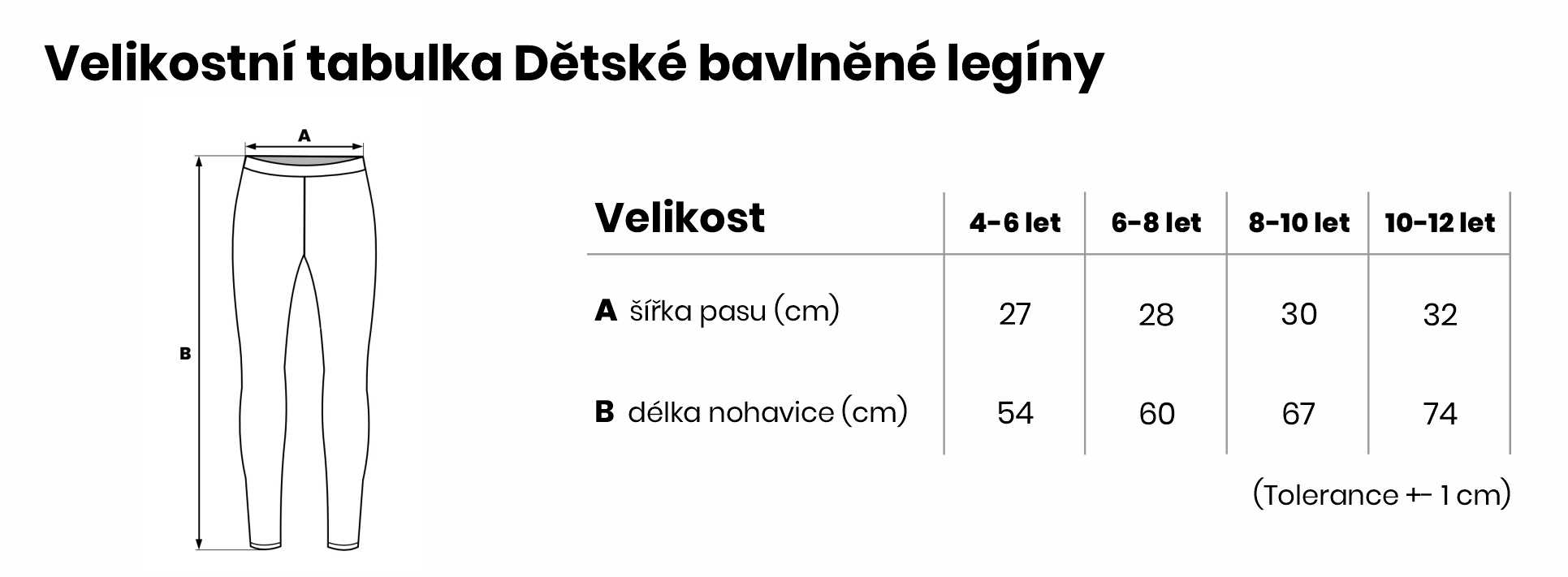 Velikostní tabulka Dětské bavlněné legíny