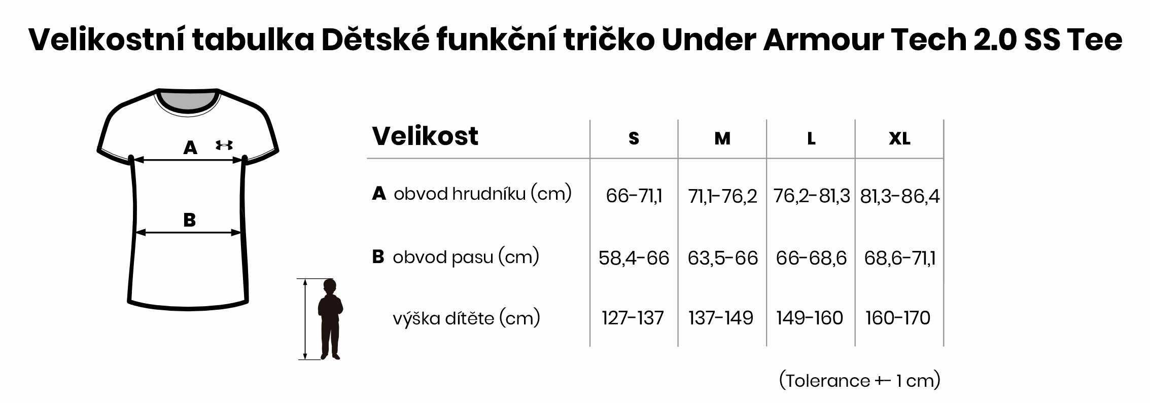 Velikostní tabulka Dětské funkční tričko Under Armour Tech 2.0 SS Tee