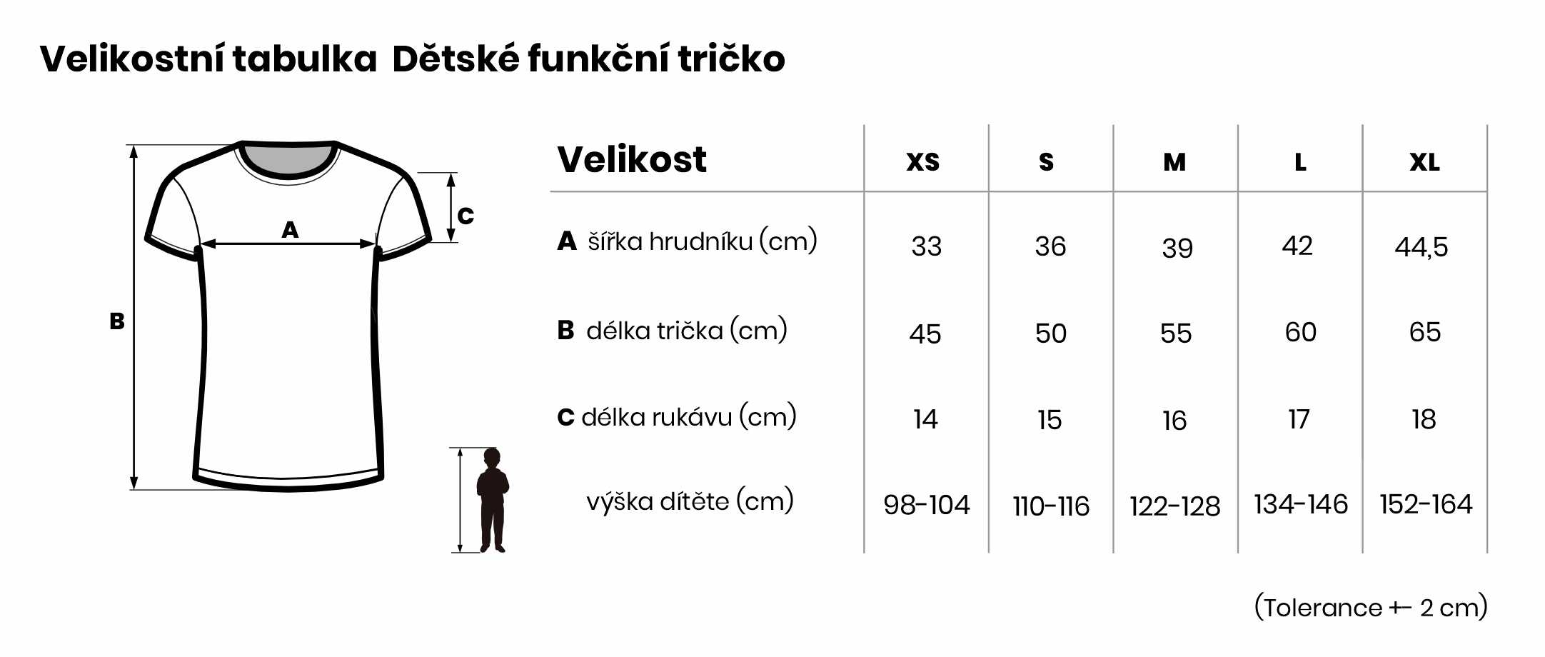 Velikostní tabulka Dětské funkční tričko