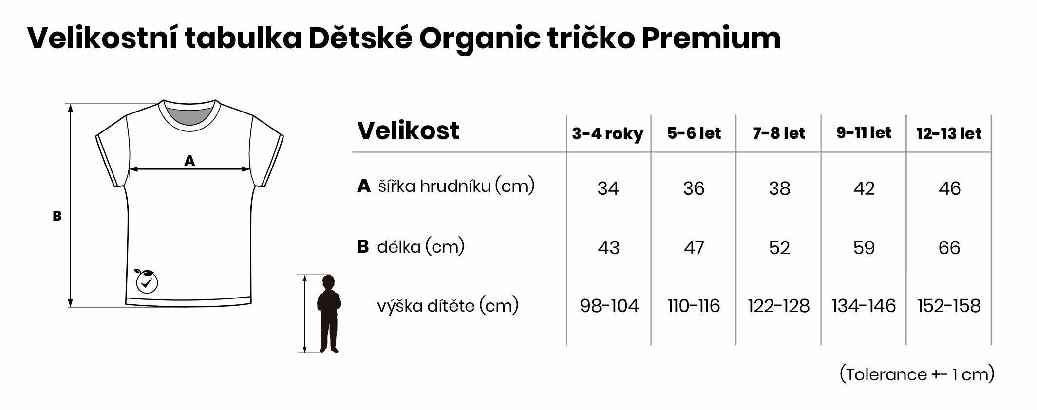 Velikostní tabulka Dětské Organic tričko Premium