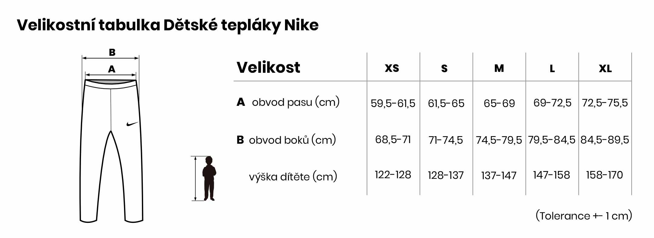Velikostní tabulka Dětské tepláky Nike