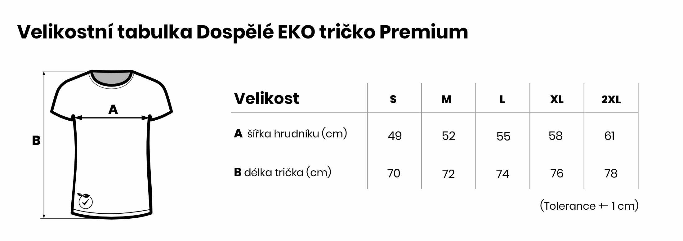 Velikostní tabulka Dospělé EKO tričko Premium