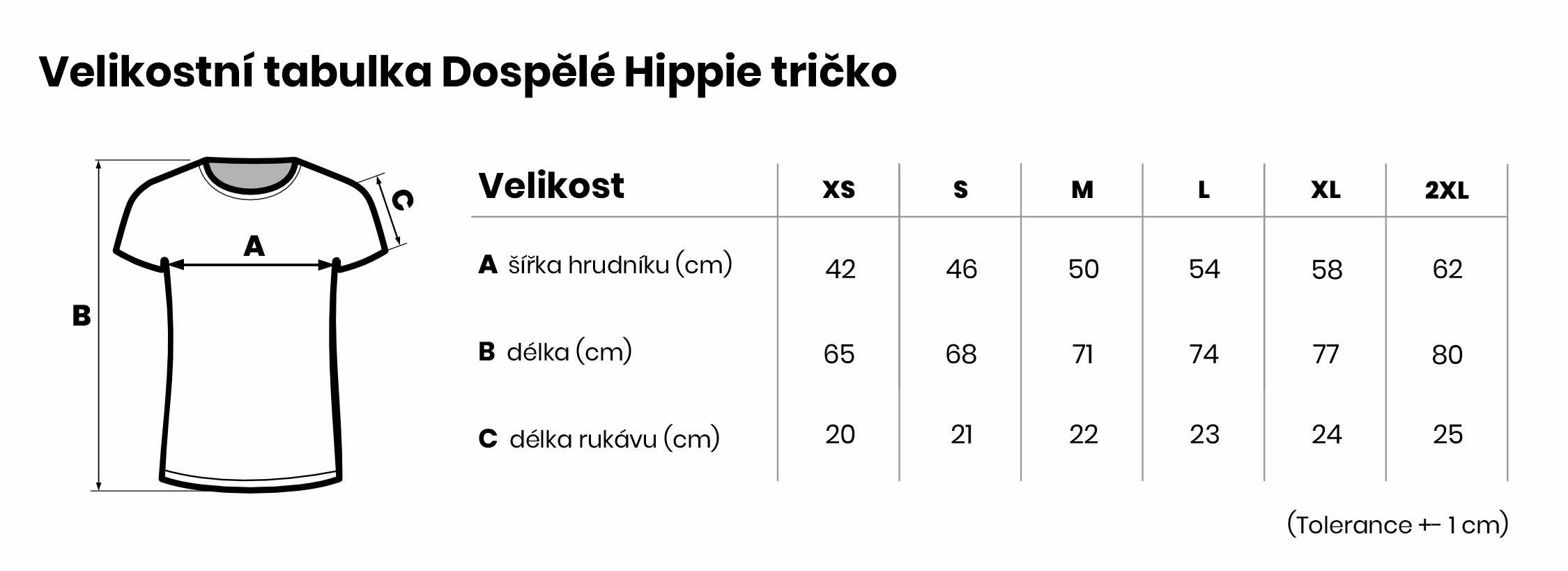 Velikostní tabulka Dospělé Hippie tričko