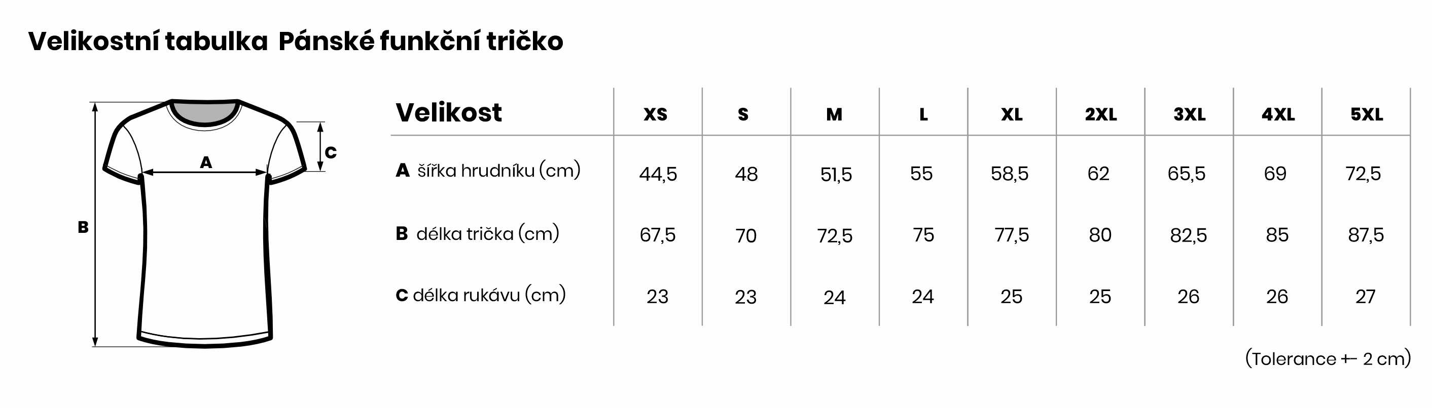 Velikostní tabulka Pánské funkční tričko