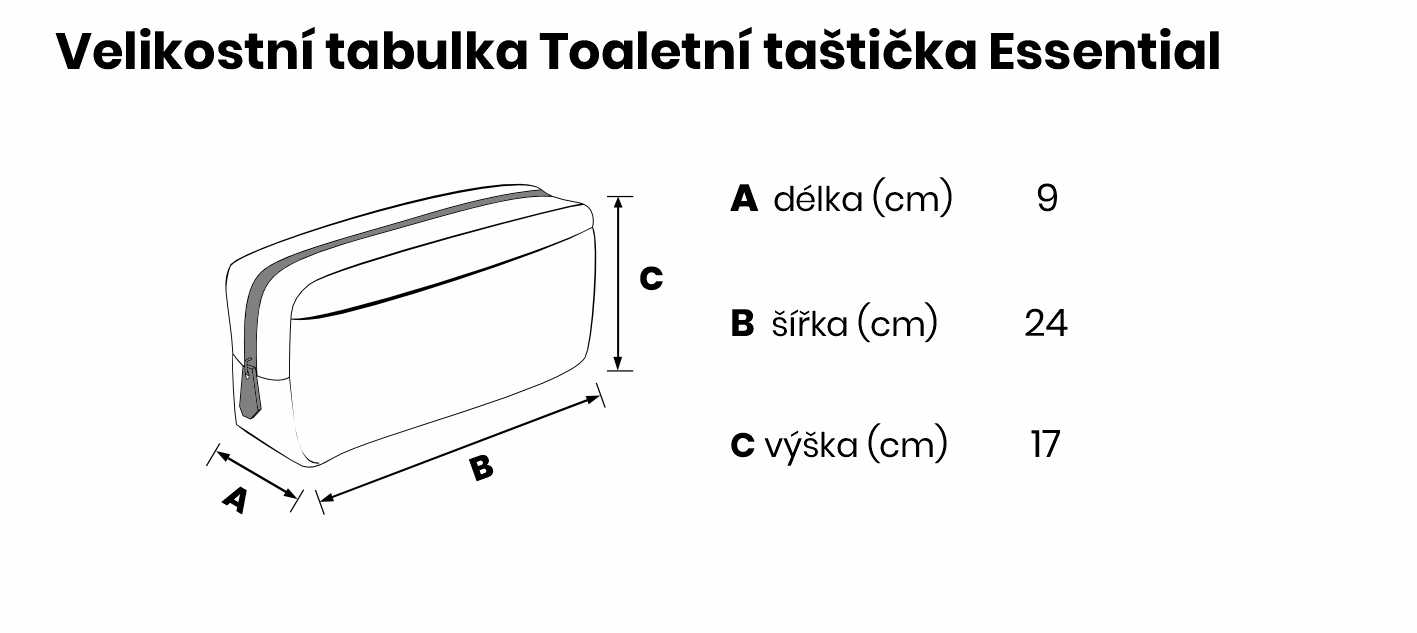 Velikostní tabulka Toaletní taštička Essential