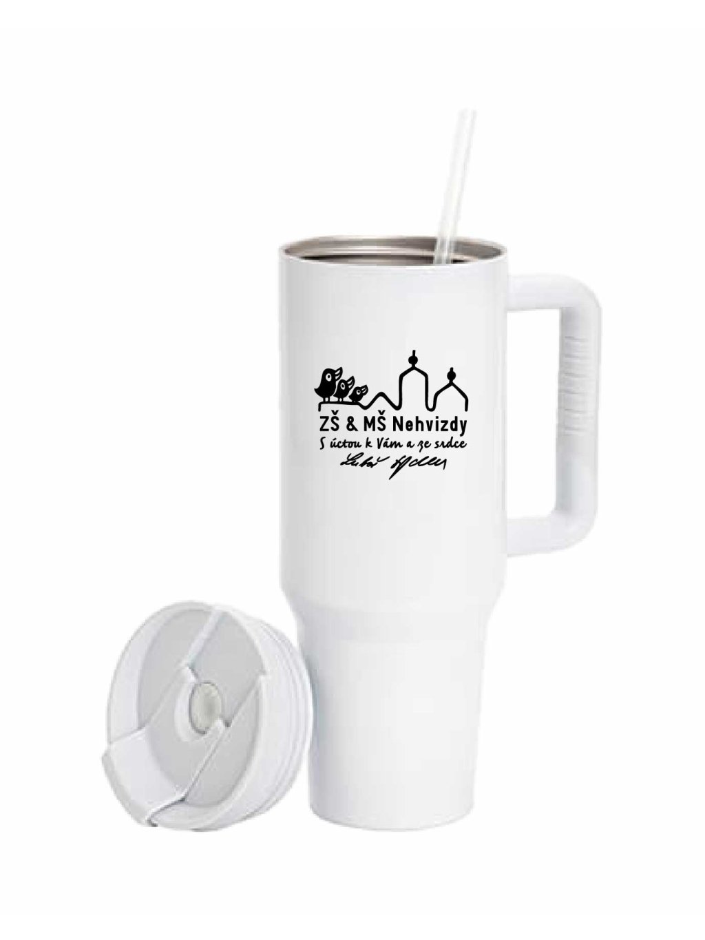 Velký termohrnek s brčkem 1200 ml ZŠ a MŠ Nehvizdy