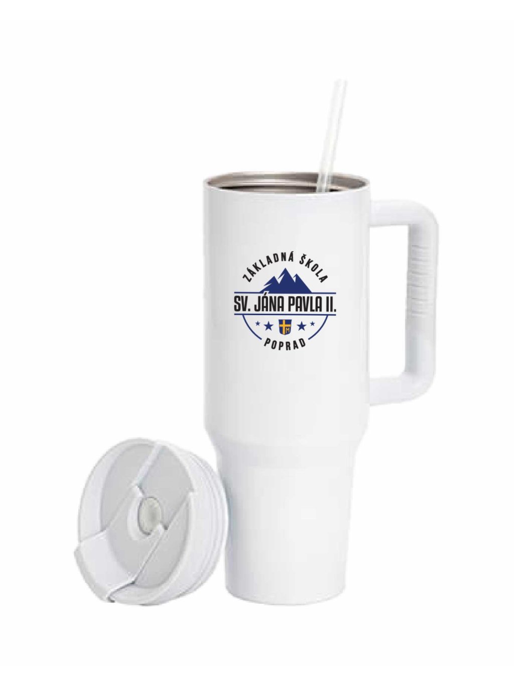 Velký termohrnek s brčkem 1200 ml ZŠ sv. Jána Pavla II. - Poprad